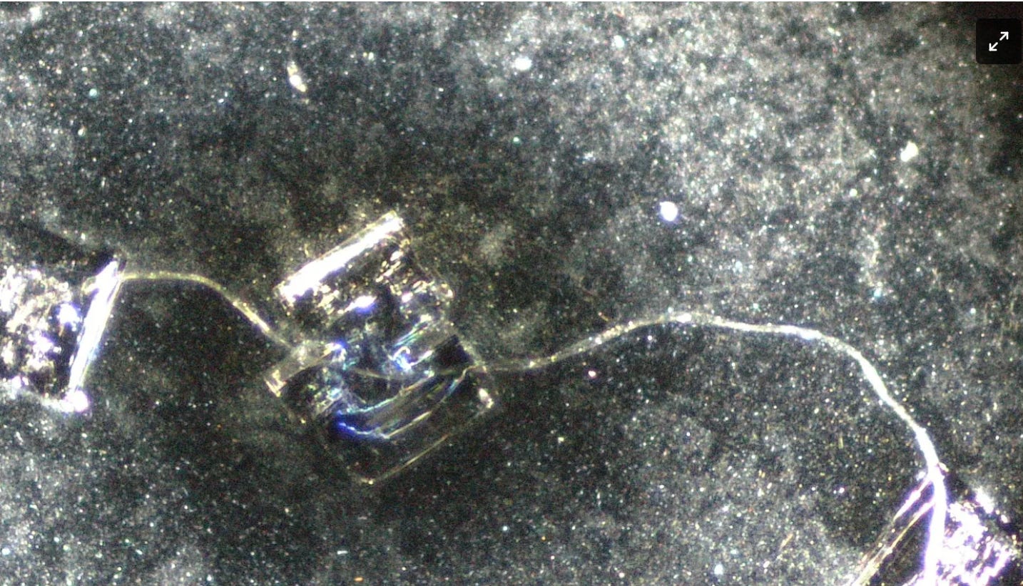 The above two photos record what look like microchips with connecting wires that had grown in C19 vax samples over extended time periods. Source: Dr. David Nixon. Here’s his Substack address and his website. For several interviews, search for '“Maria Zeee David Nixon”.