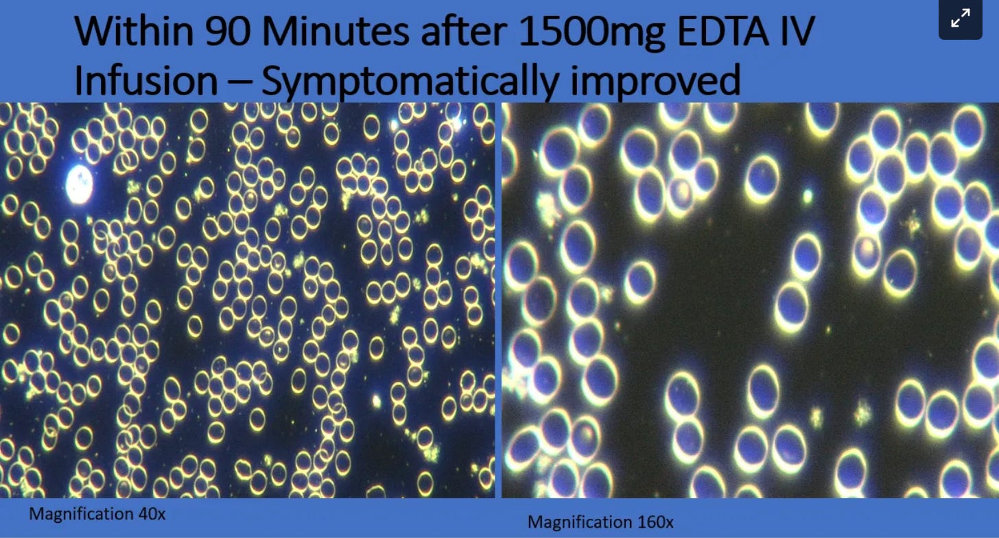 EDTA Chelation has been around for a over half a century, and has been successfully used by trained physicians. Recently, some doctors have been questioning my reports that EDTA Chelation is a beneficial therapeutic for the toxic metal contamination from vaccines and environmental sources - as well as my observed resolution of micro clotting in live blood analysis and clearing of live blood samples of the “Hydrogel Graphene” Ribbon structures seen.