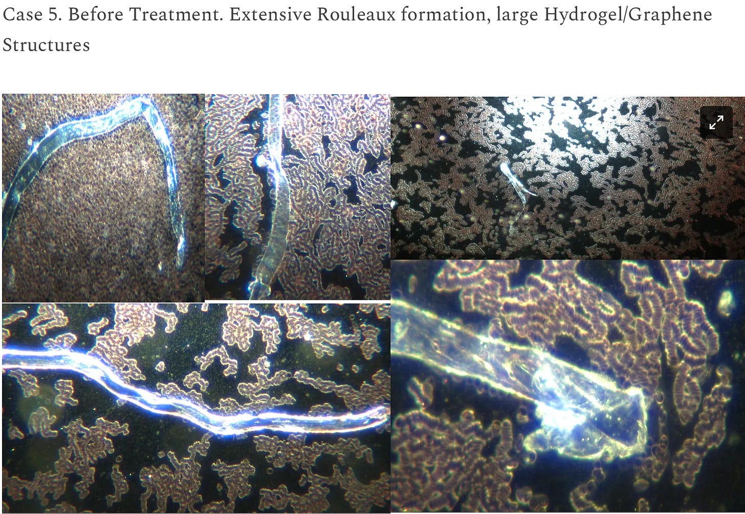 This is vitally important because toxic metals, rGO, and graphene can conduct electricity, meaning they can transfer energy from EMF radiation to human blood and power rapid growth of the fibrous non-blood clots (which Dr. Ana calls hydrogel, an apt name) and other mechanisms that are damaging blood (besides being highly toxic themselves.)